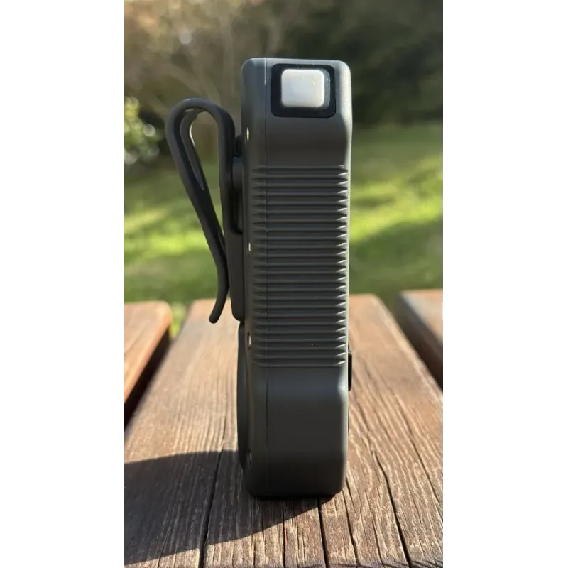 The unit is powered by two CR123A batteries (not included), providing 25–50 hours of operation, depending on usage conditions.